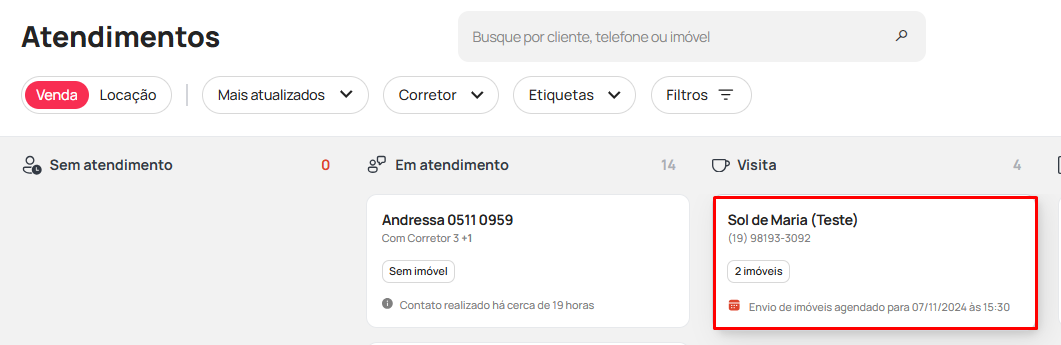 Observação: Ao aceitar a proposta, o card de atendimento ficará sinalizado em "Pendencias" com o status de Formalização pendente.