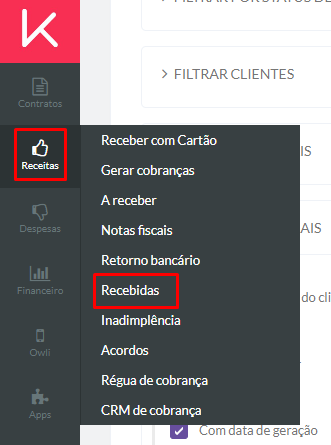 1. Acesse o Menu lateral> Receitas > Recebidas