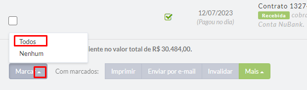 4. No final da página você pode clicar na opção "Marcar" > "Todos"