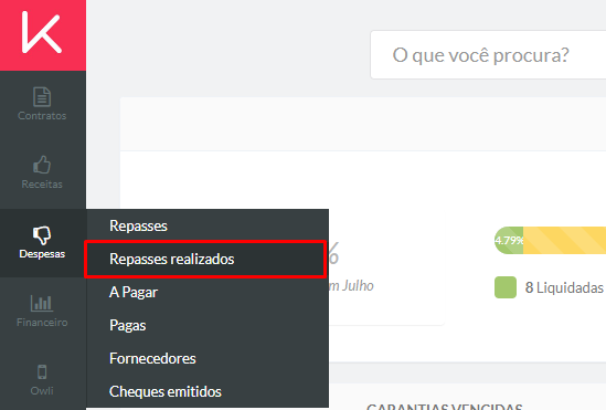 Acesse o menu "Despesas" e clique na opção "Repasses realizados":