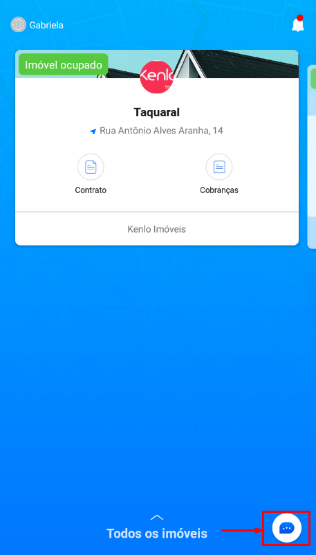 - O usuário (locador, locatário ou fiador) irá abrir seu aplicativo e clicar no ícone ? de chat no canto inferior direito da tela: