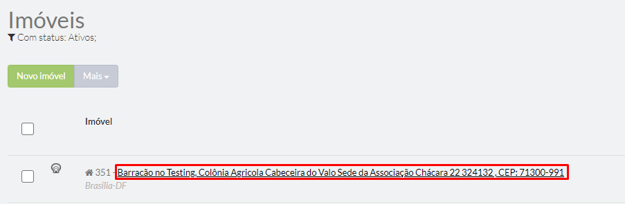 - Acesse o menu "Contratos" e clique na opção "Imóveis":