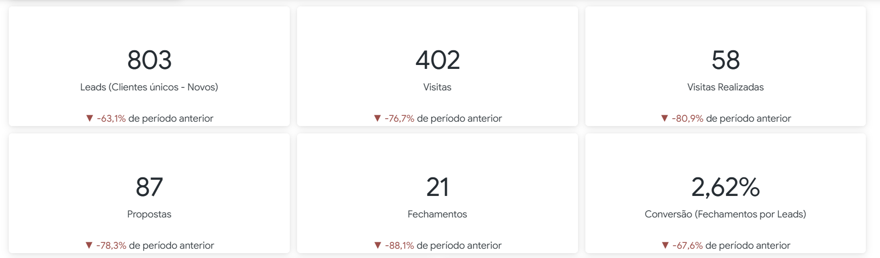 Nesta seção, apresentamos uma representação visual da quantidade de leads por grupo de mídias em relação aos eventos registrados na base de dados (leads, visitas, propostas e fechamentos). Nestes gráficos, a imobiliária pode analisar e comparar os resultados obtidos por diferentes grupos de mídia, identificando quais estão gerando mais resultados. O gráfico de Propostas foi formatado como uma tabela dinâmica para facilitar a interpretação dos dados.