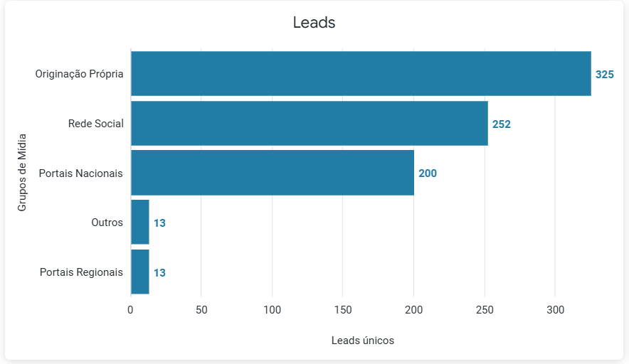 Apresenta a quantidade de Leads únicos agrupados por Grupo de Mídia