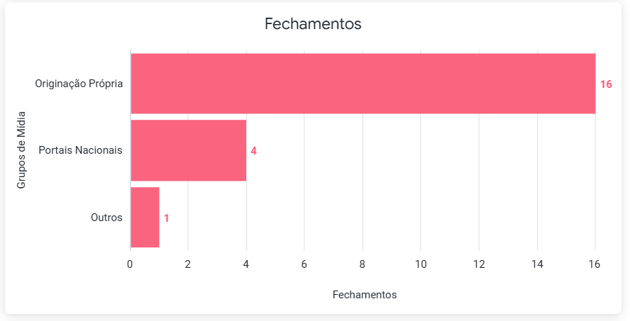 Apresenta a quantidade de fechamentos agrupados por Grupo de Mídia