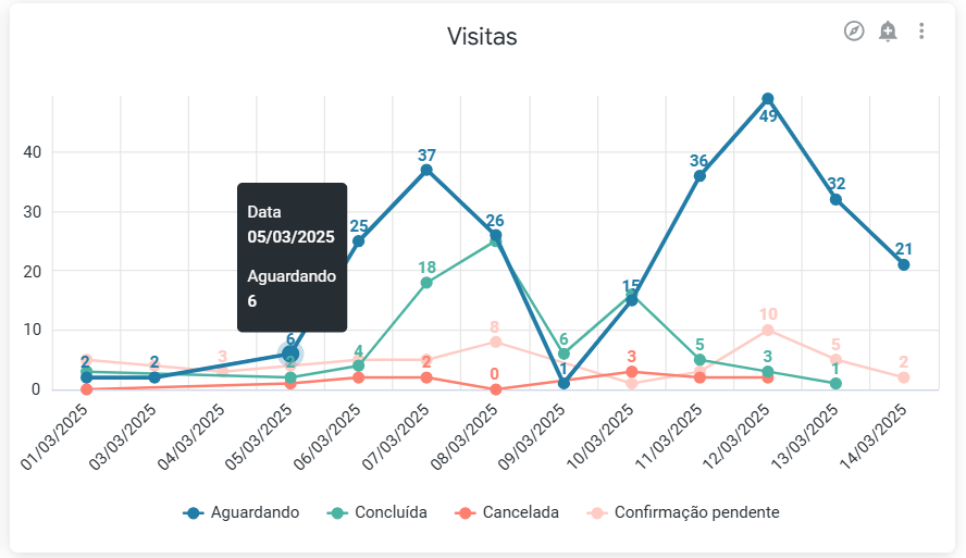 Apresenta a quantidade de Visitas com seus respectivos status agrupadas por Grupo de Mídia