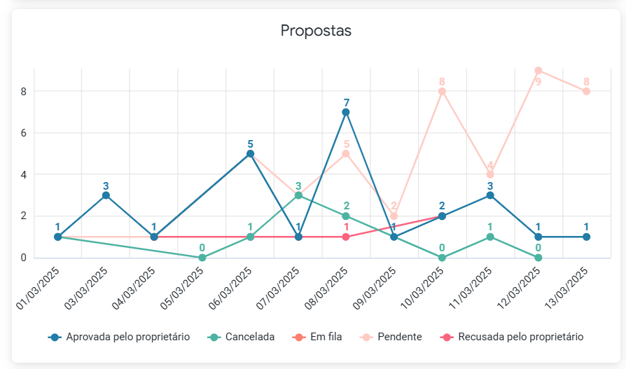 Apresenta a quantidade de propostas agrupadas de forma diária por Grupo de Mídia