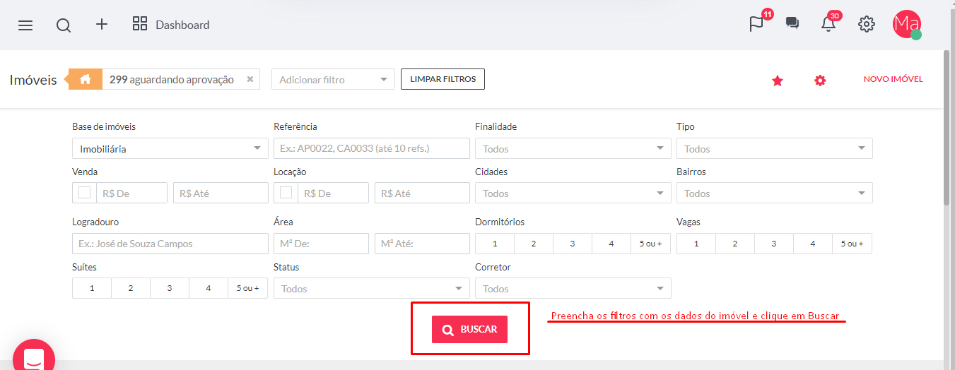 2 - Em seguida utilize os filtros para localizar imóvel que deseja lançar a proposta.