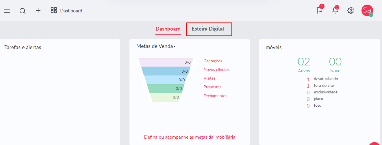 - Acesse o sistema Kenlo Imob e na Dashboard do sistema clique em "Esteira Digital":