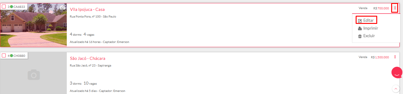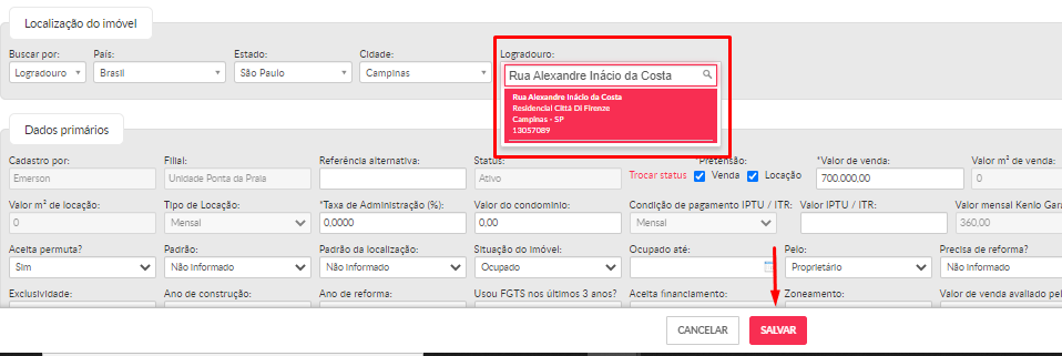 Para alterar o endereço de um imóvel já cadastrado, siga os passos abaixo: