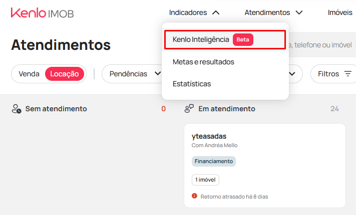 1 - Acesse o menu superior Indicadores > Kenlo Inteligência