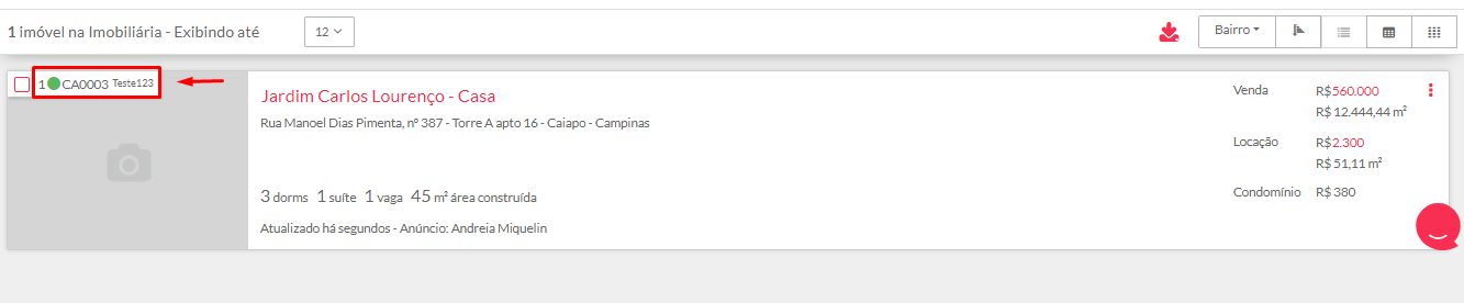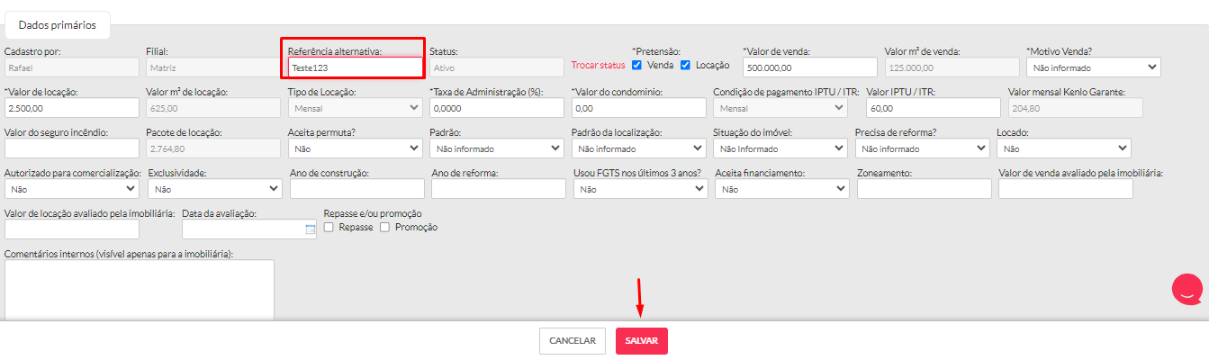 Veja abaixo como incluir a referencia alternativa na ficha de cadastro do imóvel.