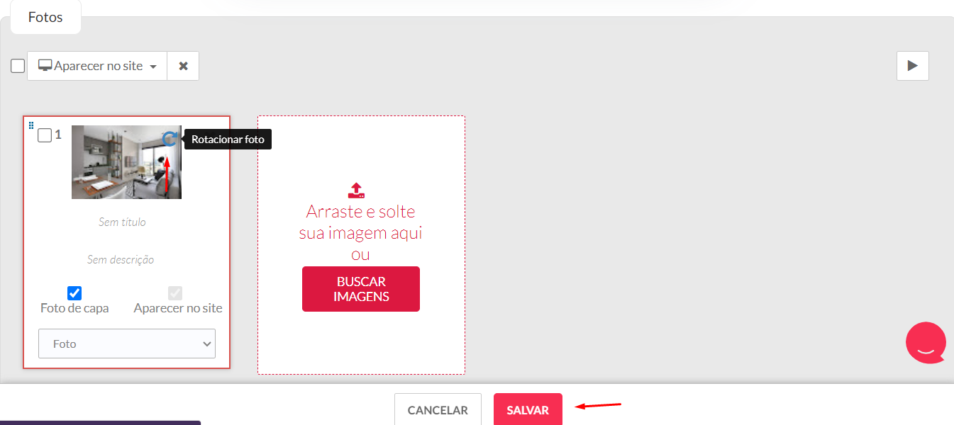 4. Para rotacionar a foto, basta posicionar o mouse sobre o canto superior da imagem até que seja exibida uma mensagem, como exemplificado abaixo.