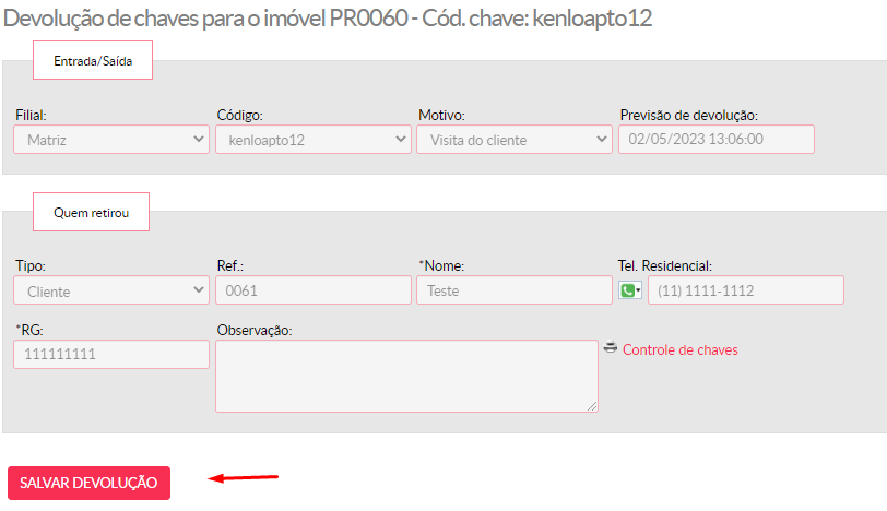 2 -  Utilize os filtros para localizar a chave que esta aguardando devolução e clique no Editar