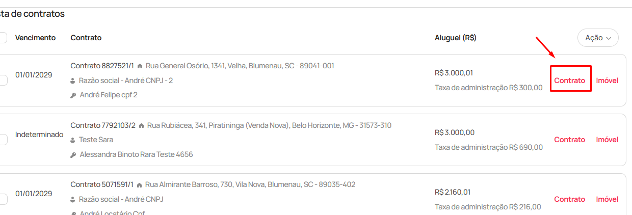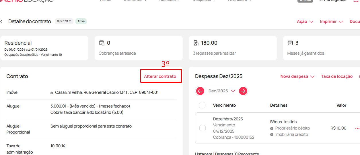 - Ao abrir contrato clique em "Alterar contrato (3)"
