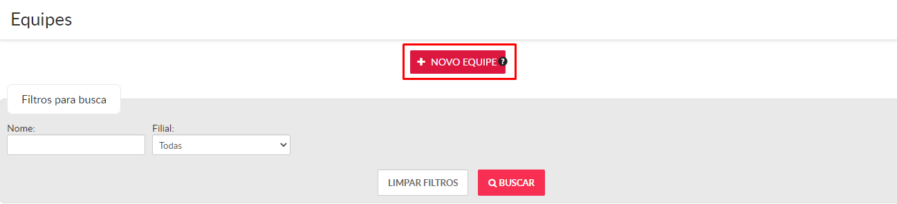 2 - Clique em "+ Novo Equipe" e preencha as informações solicitadas, como o "Nome da equipe", "Sigla", "Filial", e salve: