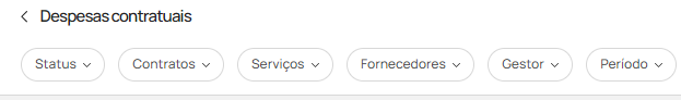 - Nesta página, serão apresentadas todas as despesas lançadas no mês atual para os Contratos de Locação. Você terá a opção de aplicar diversos filtros na tela, como serviço, contratos ou período, a fim de localizar as despesas que deseja excluir.