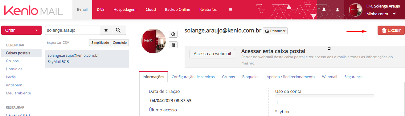 Confira abaixo procedimento para excluir uma conta de e-mail (webmail).