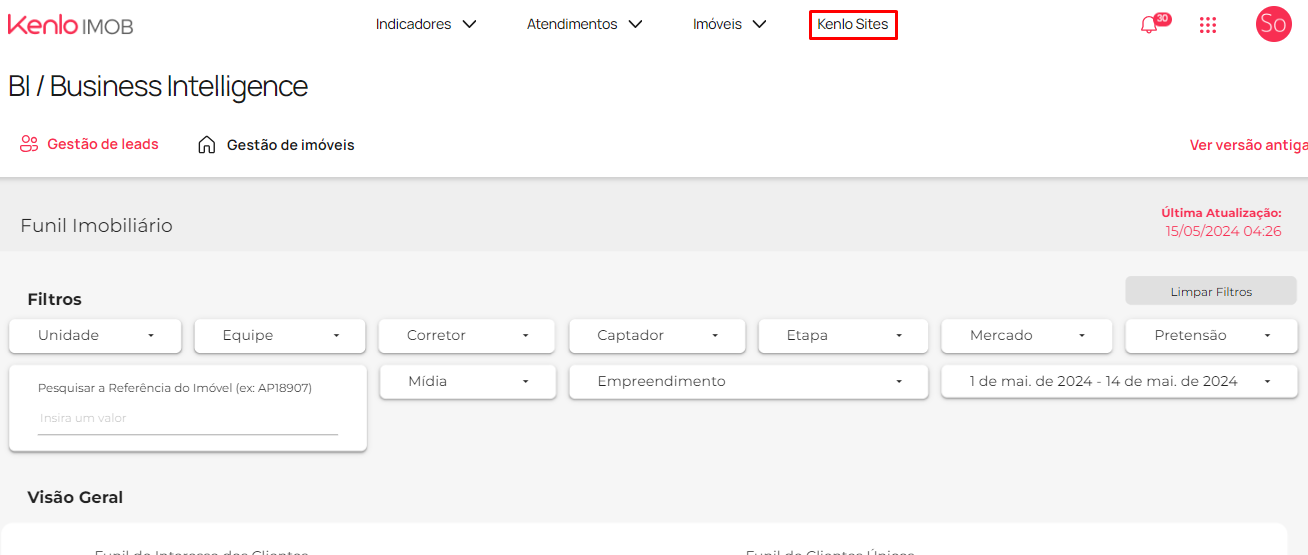 1 - Acesse: Menu Superior > Kenlo Sites: