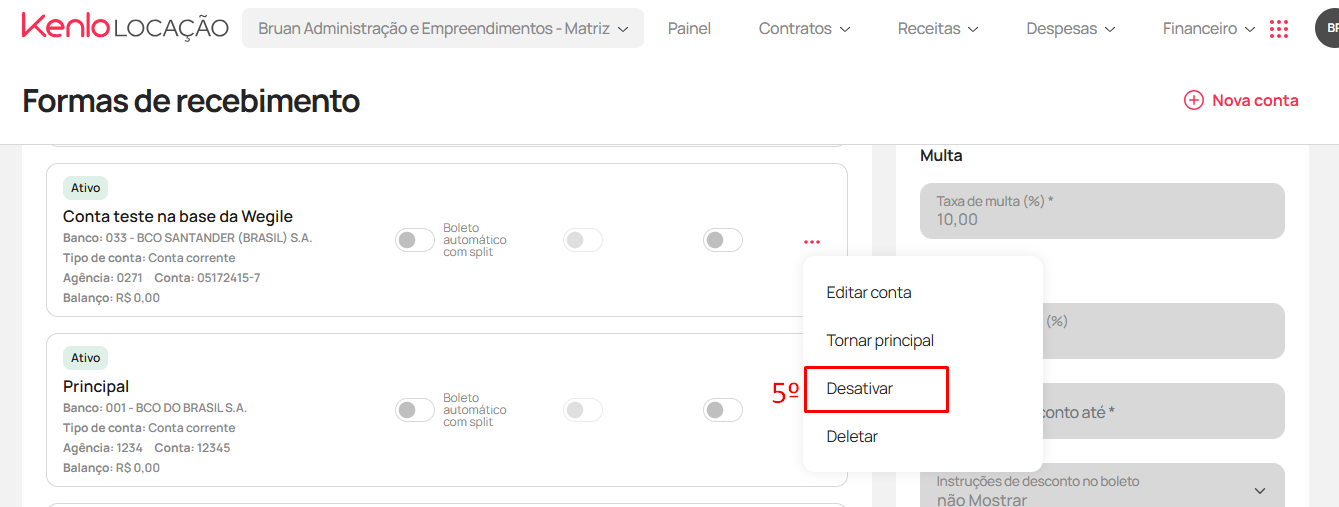 Kenlo Locação l Como desativar uma forma de recebimento