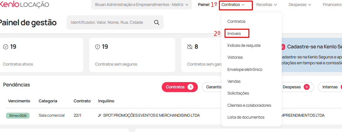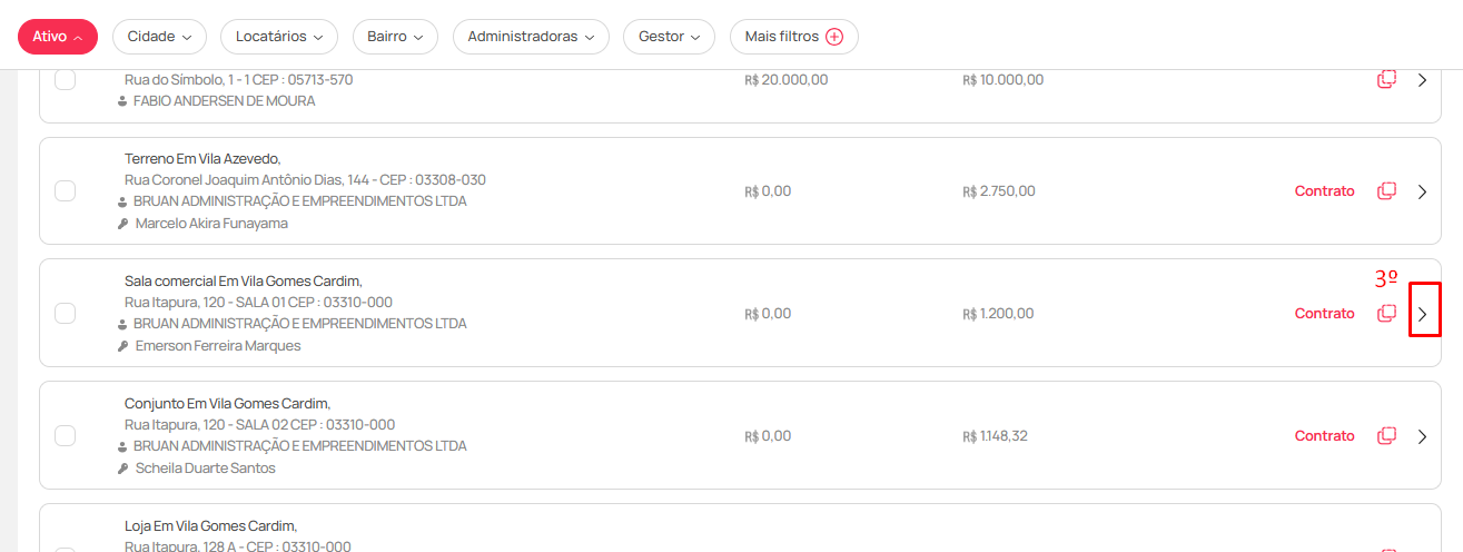 Em seguida acesse o imóvel que deseja realizar a consulta clicando na seta (3)