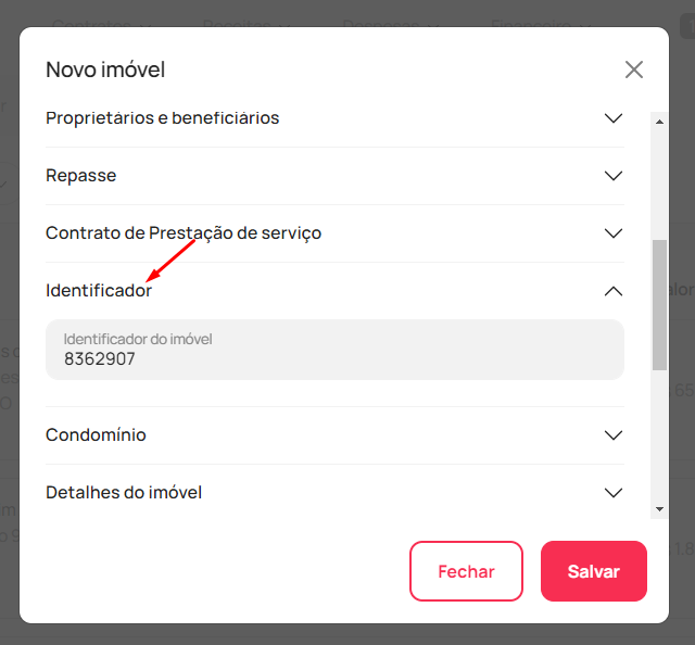 - Para facilitar a localização do novo imóvel e a geração de novos contratos, recomendamos cadastrar um novo Identificador (4) para o imóvel que será gerado, pois se deixado em branco, o sistema irá gerar um ID automaticamente. Dessa forma, você poderá localizar o novo imóvel com mais facilidade. Em seguida clique em "Salvar" (5)
