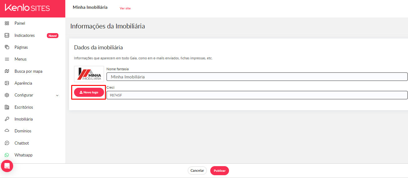 Você pode facilmente incluir ou alterar a logomarca que aparece nos documentos, e-mails enviados e fichas impressas do Kenlo Imob. Com essa funcionalidade, você pode personalizar a sua marca e torná-la mais reconhecida pelos seus clientes.