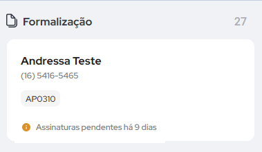 1 - Na tela inicial da Esteira (etapa de formalização), localize o cliente e clique para abrir a tela de Gestão de Formalização: