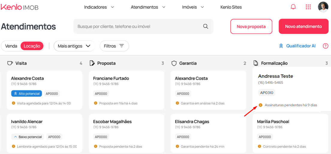 - Como atualizar o número de telefone do cliente quando a proposta esta com status de Contrato pendente ou Vistoria pendente;