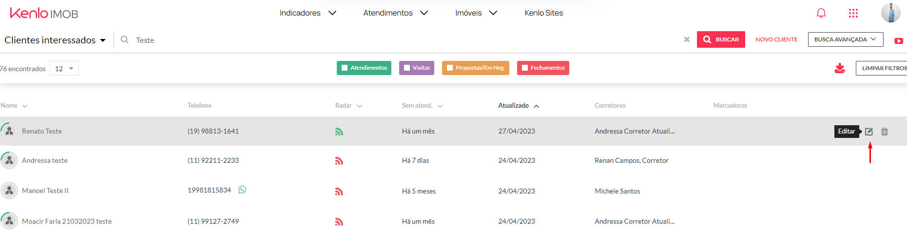 2 - Localize o cliente desejado, clique no editar, faça as alterações e certifique-se que o telefone esta cadastrado como celular.