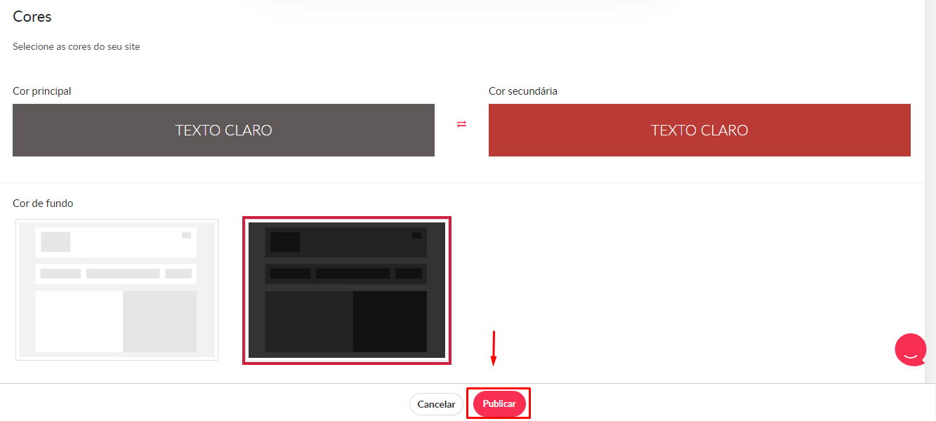 4 - Escolha a cor principal, cor secundária e cor de fundo do site.
