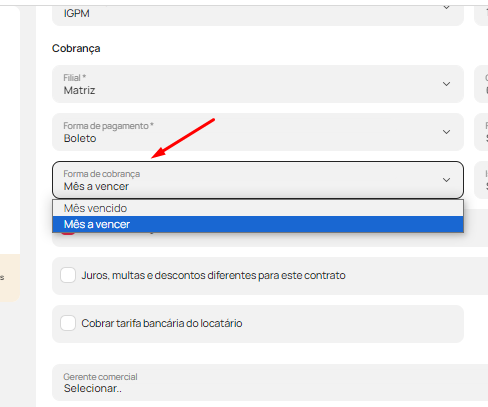 Ao inserir um novo contrato no sistema, é necessário definir se a cobrança será referente ao mês vencido ou ao mês a vencer. Essa escolha pode gerar dúvidas, por isso vamos explicar a diferença entre esses dois tipos de cobrança.