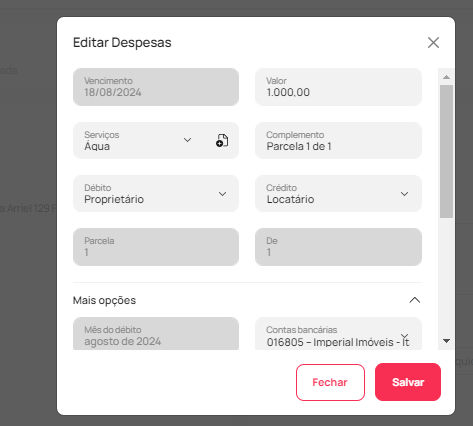 - No caso de despesas recorrentes a alteração irá refletir em todos os lançamentos futuros ou que ainda não estiverem vinculados a uma cobrança.