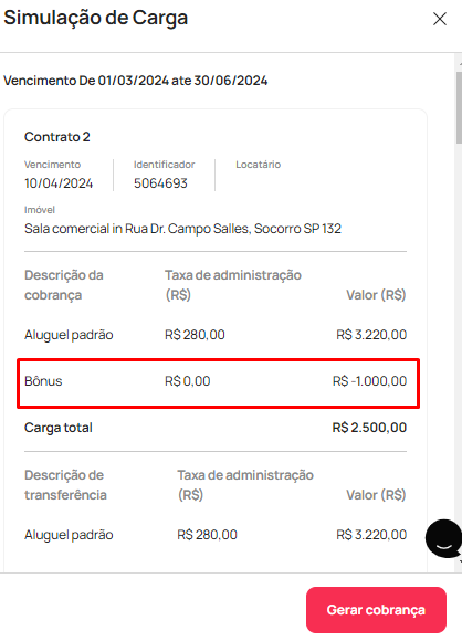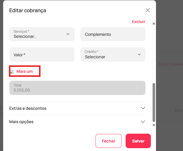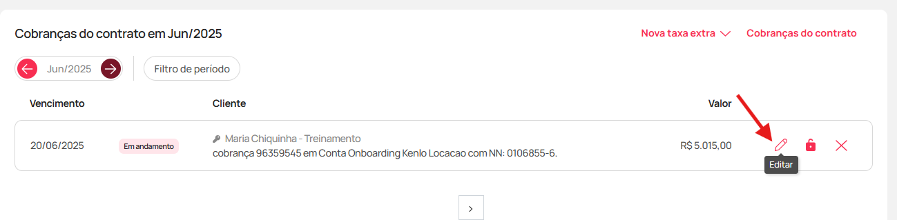 - Dentro do contrato, ao fim da tela, localize a cobrança e clique no ícone de "lápis" (4)