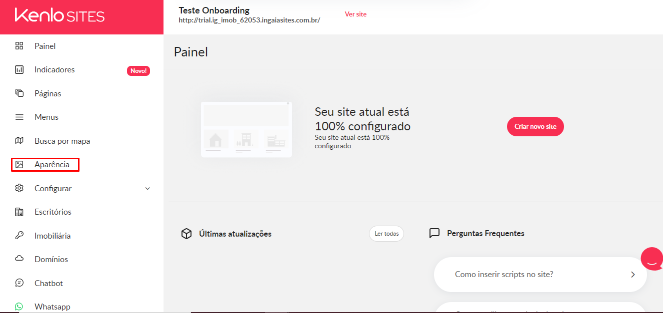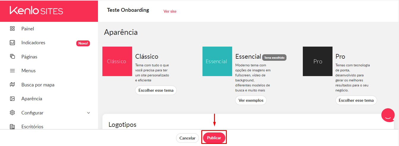 1 - Com perfil administrativo acesse o Menu > Produtos Kenlo > Kenlo Sites