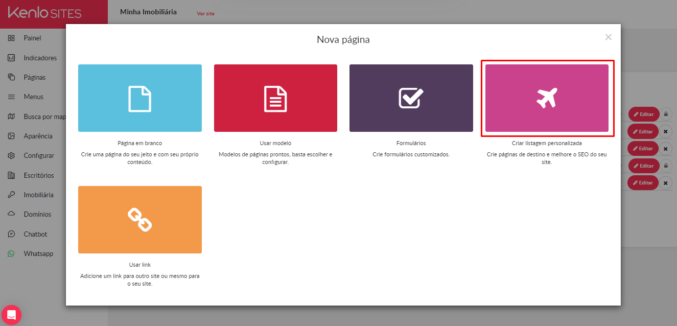 4 - Selecione a opção "Criar listagem personalizada"