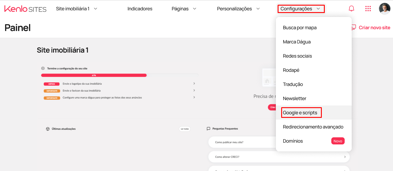 Para alterar o nome da imobiliária que aparece no navegador, siga o procedimento abaixo.