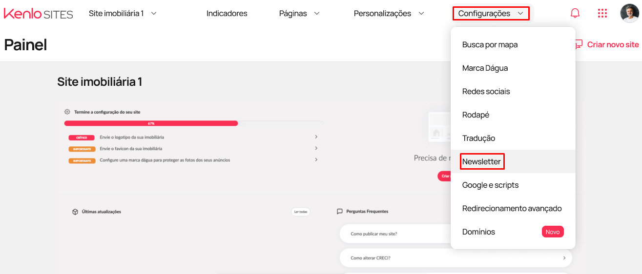 Como habilitar newsletter no Kenlo Sites?