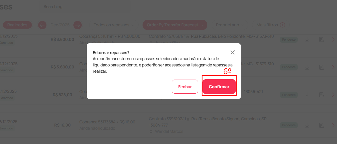 - Ao clicar o sistema abrirá uma Pop-up pedindo sua confirmação, clique em "Confirmar (6)"