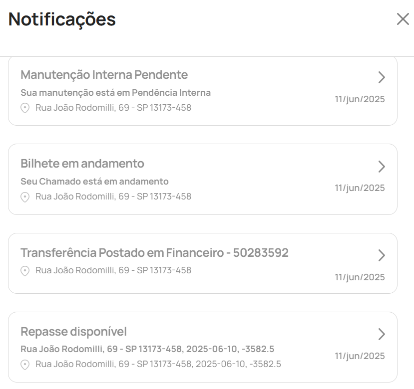 As notificações aparecem tanto na área do cliente versão web, quando aplicativo, mantendo o cliente sempre informado.