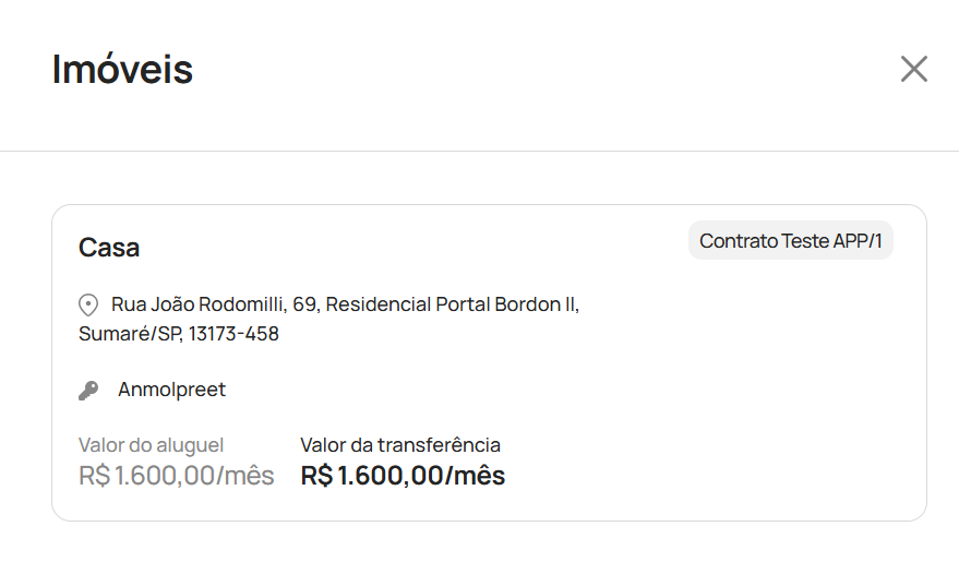 Ao clicar em “Ver imóvel específico”, o sistema apresentará todos os imóveis com contrato vigente.