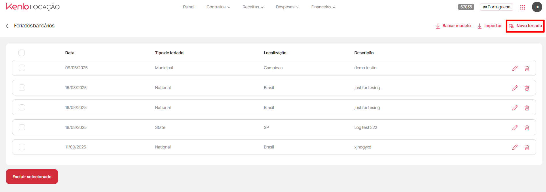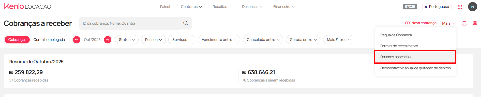 O sistema pode conter alguns feriados padrão, mas é importante que a imobiliária cadastre feriados locais (municipais ou regionais) para garantir que os boletos não sejam gerados com vencimento nesses dias.