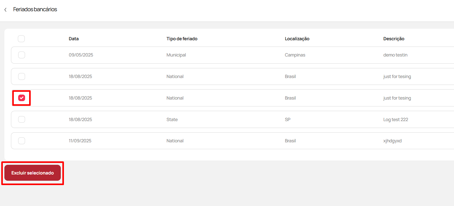 5. O que acontece se eu não cadastrar um feriado bancário?