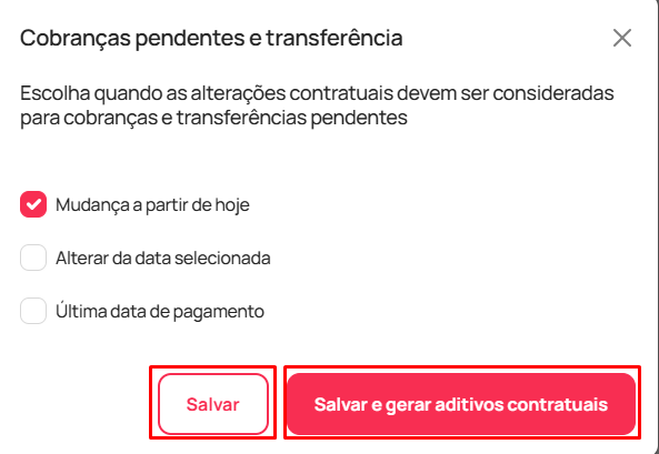 - Em seguida clique em "Salvar" ou "Salvar e gerar aditivos contratuais"