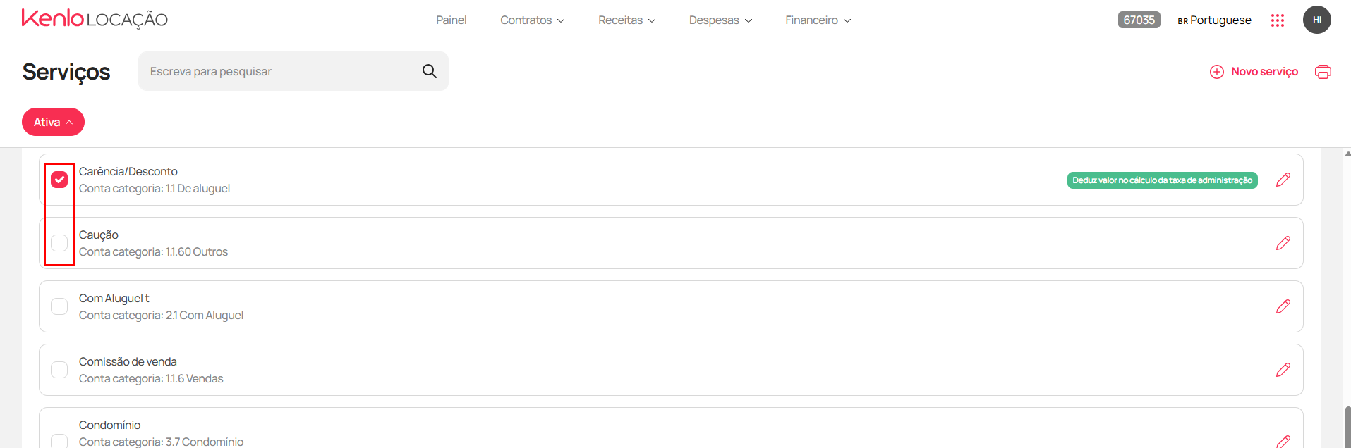 Prontinho! O serviço foi ativado e estará disponível na lista para lançamento de despesas em contratos e imóveis.