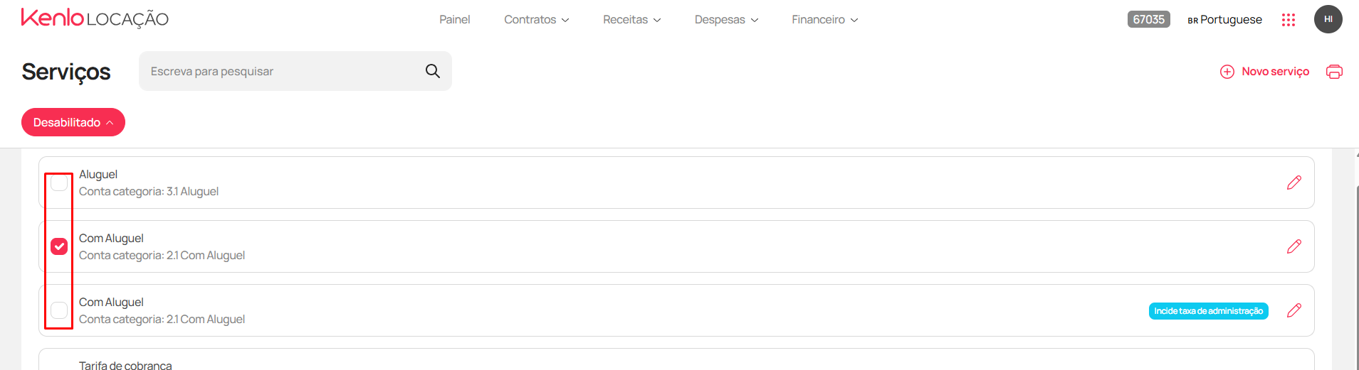 - Localize e marque a caixa de seleção do(s) serviço(s) que deseja desativar