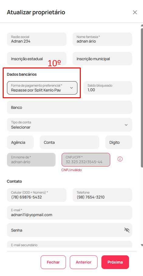 - Ao abrir validar se: Forma de pagamento preferencial está como "Repasse por Split Kenlo Pay" (10)