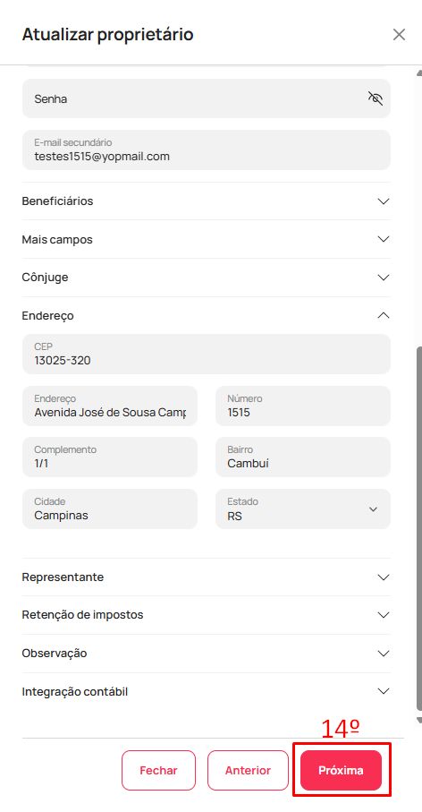 - Caso o contrato tenha mais de um proprietário, faça o mesmo processo para todos os proprietários presentes no contrato.