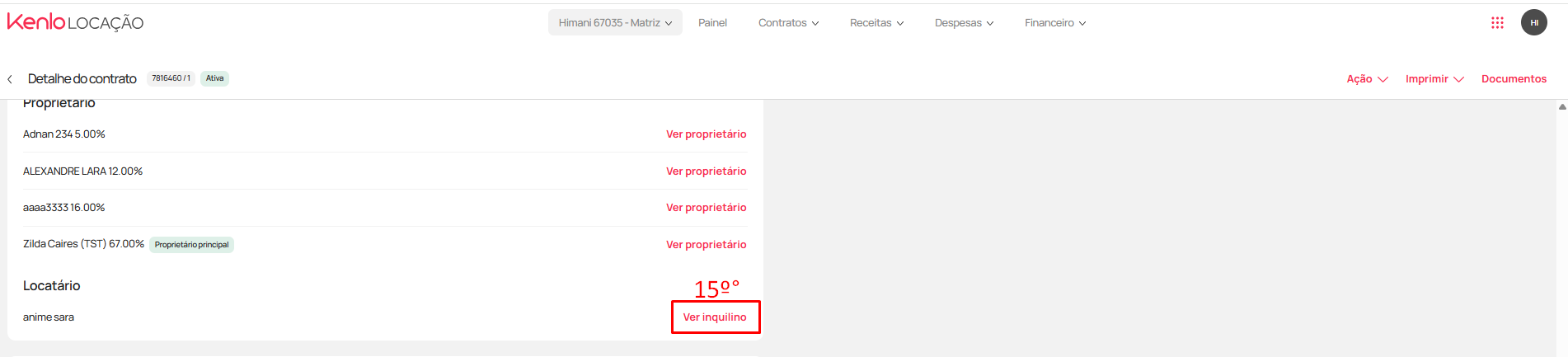 - Realize este processo de validar os dados também para o cadastro do inquilino, clicando em "Ver inquilino" (15)