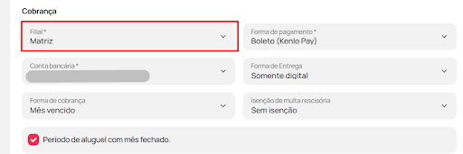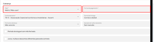 Observação: Caso algum contrato no campo de Filial conter "Matriz não usar", faça a alteração no contrato para a filial correta. E confirme se a forma de pagamento está vinculada.